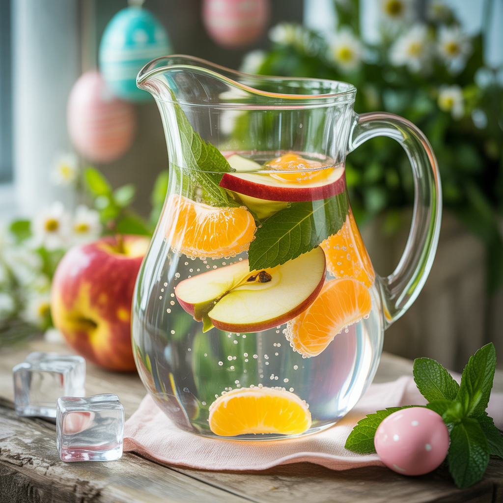 - Zutaten: 1 Liter Sprudelwasser, 1 Apfel, 1 Mandarine, frische Kräuter wie Zitronenmelisse oder Minze, optional Eiswürfel.